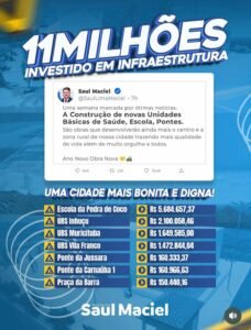 Os investimentos abrangem áreas essenciais como educação, saúde e infraestrutura, com novas escolas, Unidades Básicas de Saúde, pontes e espaços públicos, alcançando tanto a sede do município quanto a zona rural. As ações representam mais dignidade, mais acesso aos serviços públicos e mais qualidade de vida para os são-benedidenses.